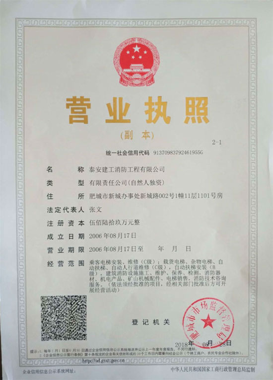 泰安建工消防工程有限公司,注冊(cè)成立于 2006 年8 月,注冊(cè)資金569 萬(wàn)元。具有山東省公安廳消防局、山東省建筑工程管理局頒發(fā)的建筑消防設(shè)施貳級(jí)施工資質(zhì),2012 年9 月13日取得特種設(shè)備安裝改造許可證(電梯),2019 年5月取得建筑消防設(shè)施維修保養(yǎng)二級(jí)資質(zhì)。是山東消防協(xié)會(huì)會(huì)員單位,2007 年6月被泰安市工商局命名為市級(jí)守合同重信用企業(yè)。 公司成立以來(lái),一直奉行“質(zhì)量第一,用戶(hù)至上,社會(huì)利益為先”的原則。公司在“重工程質(zhì)量,創(chuàng)精品工程”的戰(zhàn)略方針指導(dǎo)下,已完成及目前在建的消防工程近百余項(xiàng)。公司下設(shè)工程部、技術(shù)部、維修部、財(cái)務(wù)部,工程技術(shù)專(zhuān)業(yè)人員 42 人。擁有一級(jí)、二級(jí)注冊(cè)建造師6 人,公司經(jīng)理、技術(shù)負(fù)責(zé)人、財(cái)務(wù)負(fù)責(zé)人均具有高級(jí)專(zhuān)業(yè)職稱(chēng),所有技術(shù)人員均經(jīng)省消防局或省建管局專(zhuān)業(yè)培訓(xùn)并持證上崗。主要從事建筑消防設(shè)施施工、維護(hù)、保養(yǎng)、檢測(cè);乘客電梯、載貨電梯、雜物電梯、自動(dòng)扶梯、安裝、維修;消防器材、機(jī)電產(chǎn)品、礦山機(jī)械配件、電梯銷(xiāo)售;消防技術(shù)咨詢(xún)服務(wù)。